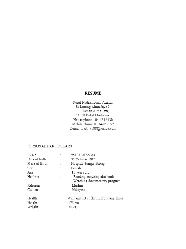 91 Zip Cv Template 15 Year Old Free Printable Download